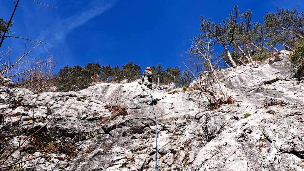 Er ist einige Jahre nicht geklettert, darum nur was leichtes - wir waren schnell oben - angenehm war es!