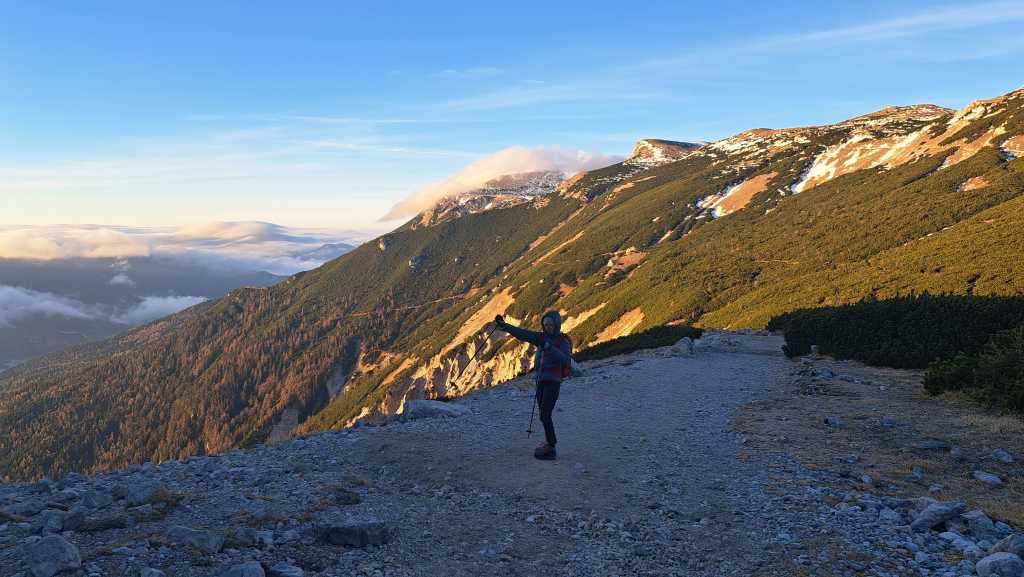 Oben sitzend dacht ich mir, dass das noch nicht alles sein könne und hab mir alternative Abstiegsrouten gesucht im Internet - während die Kraniche in V-Formation über der Rax nach NW flogen 🤔
