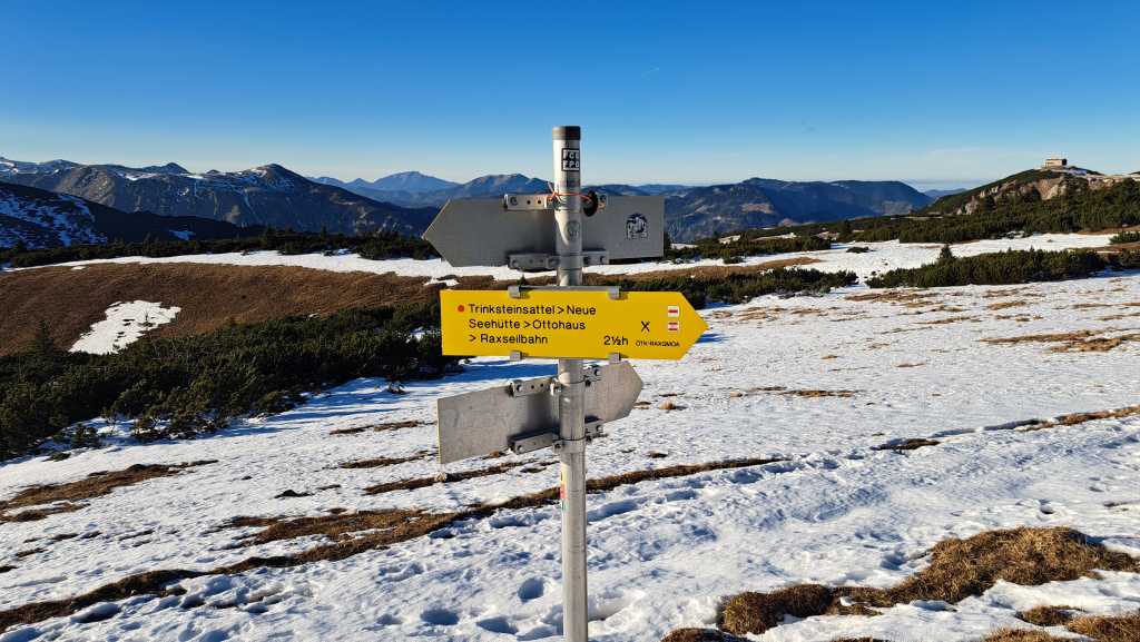 mit Ute, Matthias und Tschoni - wir wollten raus, Matthias musste raus, zufällig hatten wir am selben Tag die Rax angedacht und so trafen wir uns in Reichenau im Kaffee Nöbauer. Schön wars die beiden zu sehen, wir fuhren dann zum Preinergschaid und entgegen meiner Erwartung waren die Parkplätze nicht überfüllt.