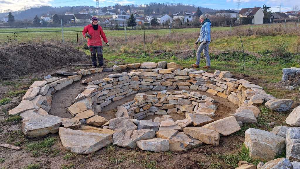 mit Andi, Ute und Sigrid - Trockensteinmauer bauen, ca. 15m lang, 3/4m hoch, und noch zwei niederere.